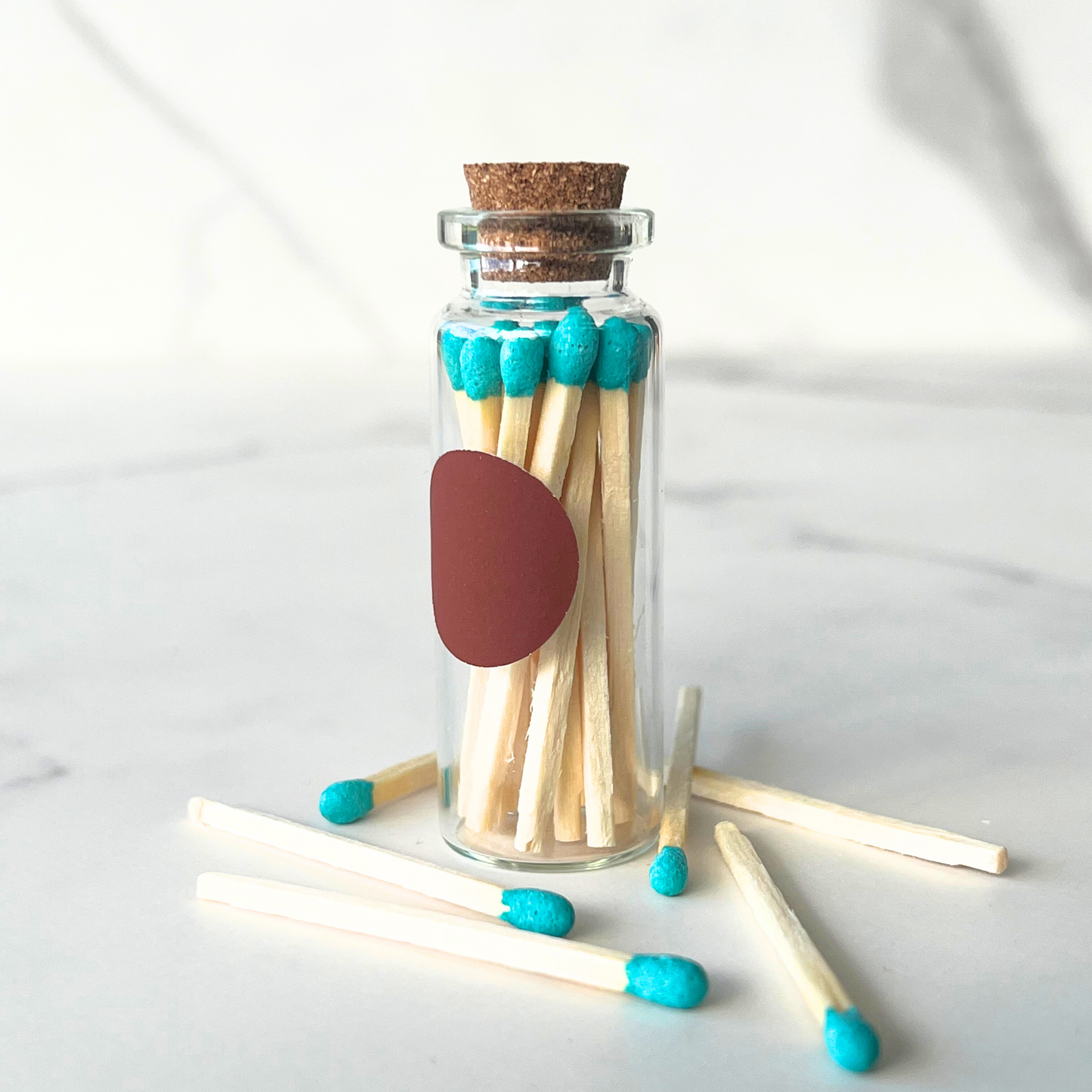 Dive into elegance with our Vivid Match Bottles in Teal Blue. These chic teal matches add a sophisticated touch to any setting. Each bottle contains 16 matches with stunning striker paper on the side. Perfect for stylish dinner parties, ocean-themed decor, or as a cute gift.